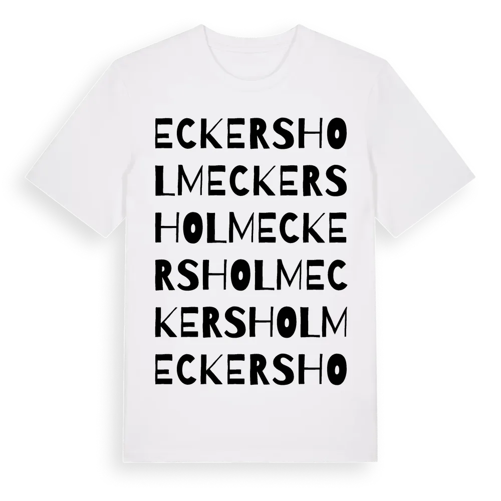 Eckersholm ordlek t-shirt är inspirerad av Eckersholm i Jönköpings län, Sverige. Tröjan är designad för dig som har en speciell koppling till platsen – oavsett om du bor här, har rötterna här eller bara älskar Eckersholm.