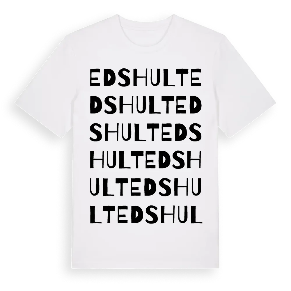 Edshult ordlek t-shirt är inspirerad av byn Edshult i Jönköpings län, Sverige. Tröjan är designad för dig som har en speciell koppling till platsen – oavsett om du bor här, har rötterna här eller bara älskar Edshult.