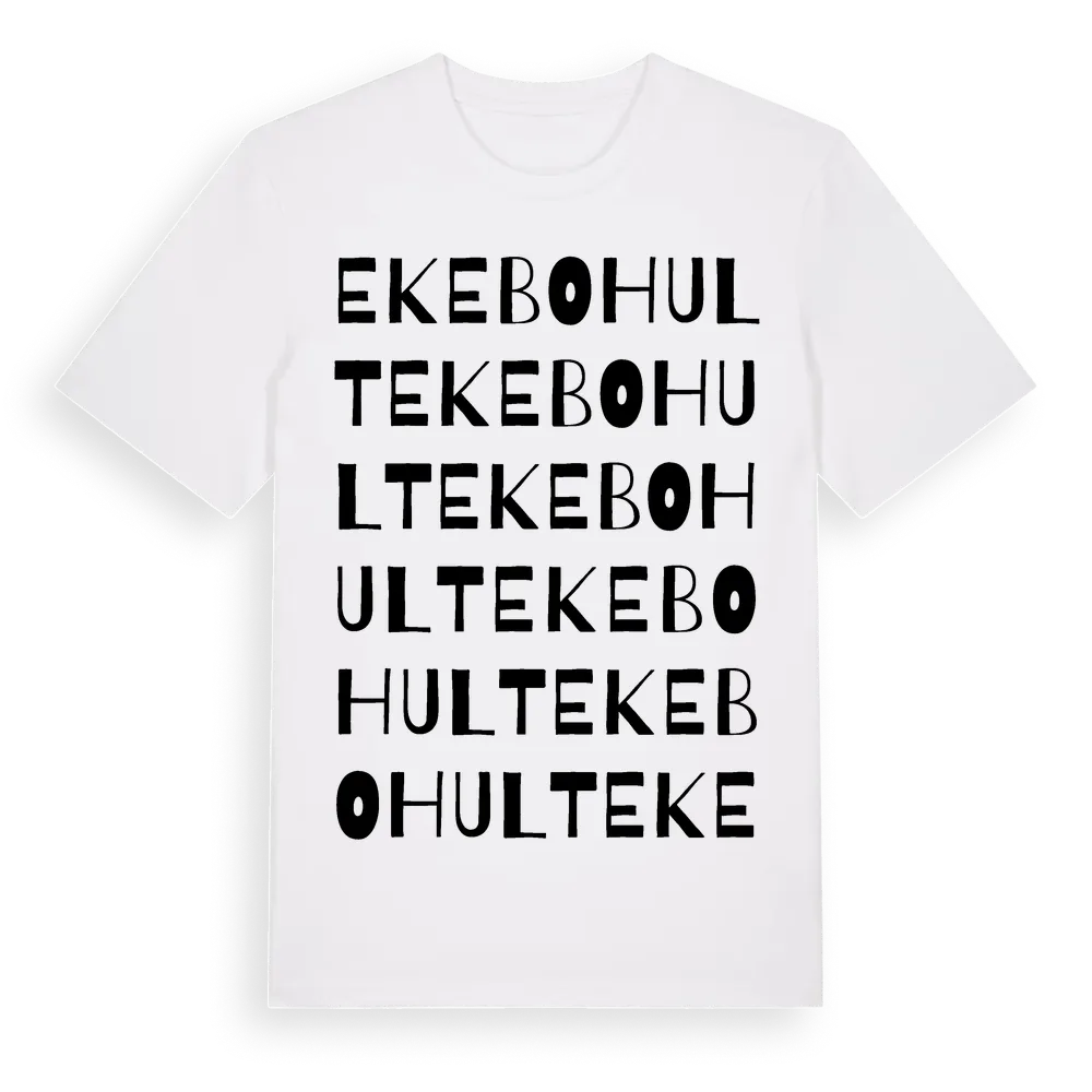 Ekebohult ordlek t-shirt är inspirerad av Ekebohult i Jönköpings län, Sverige. Tröjan är designad för dig som har en speciell koppling till platsen – oavsett om du bor här, har rötterna här eller bara älskar Ekebohult.