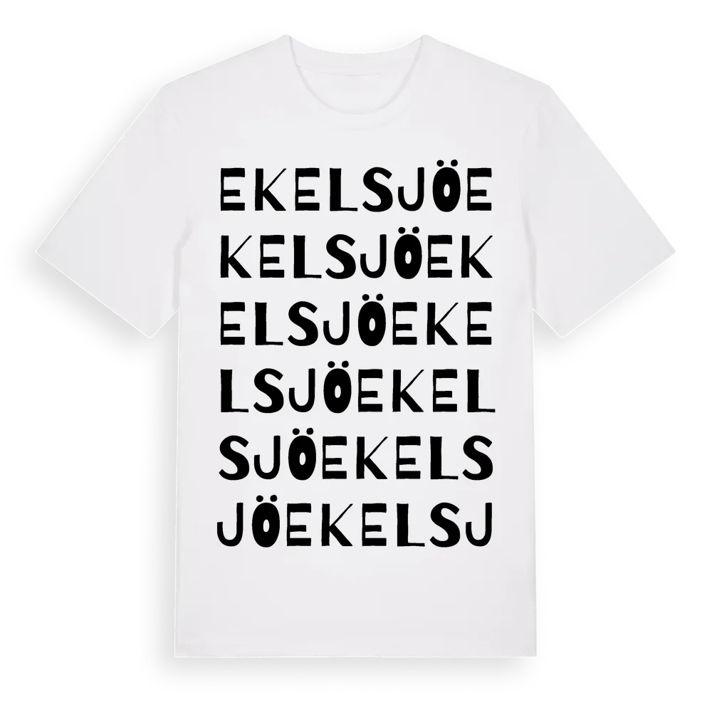Ekelsjö ordlek t-shirt är inspirerad av byn Ekelsjö i Jönköpings län, Sverige. Tröjan är designad för dig som har en speciell koppling till platsen – oavsett om du bor här, har rötterna här eller bara älskar Ekelsjö.