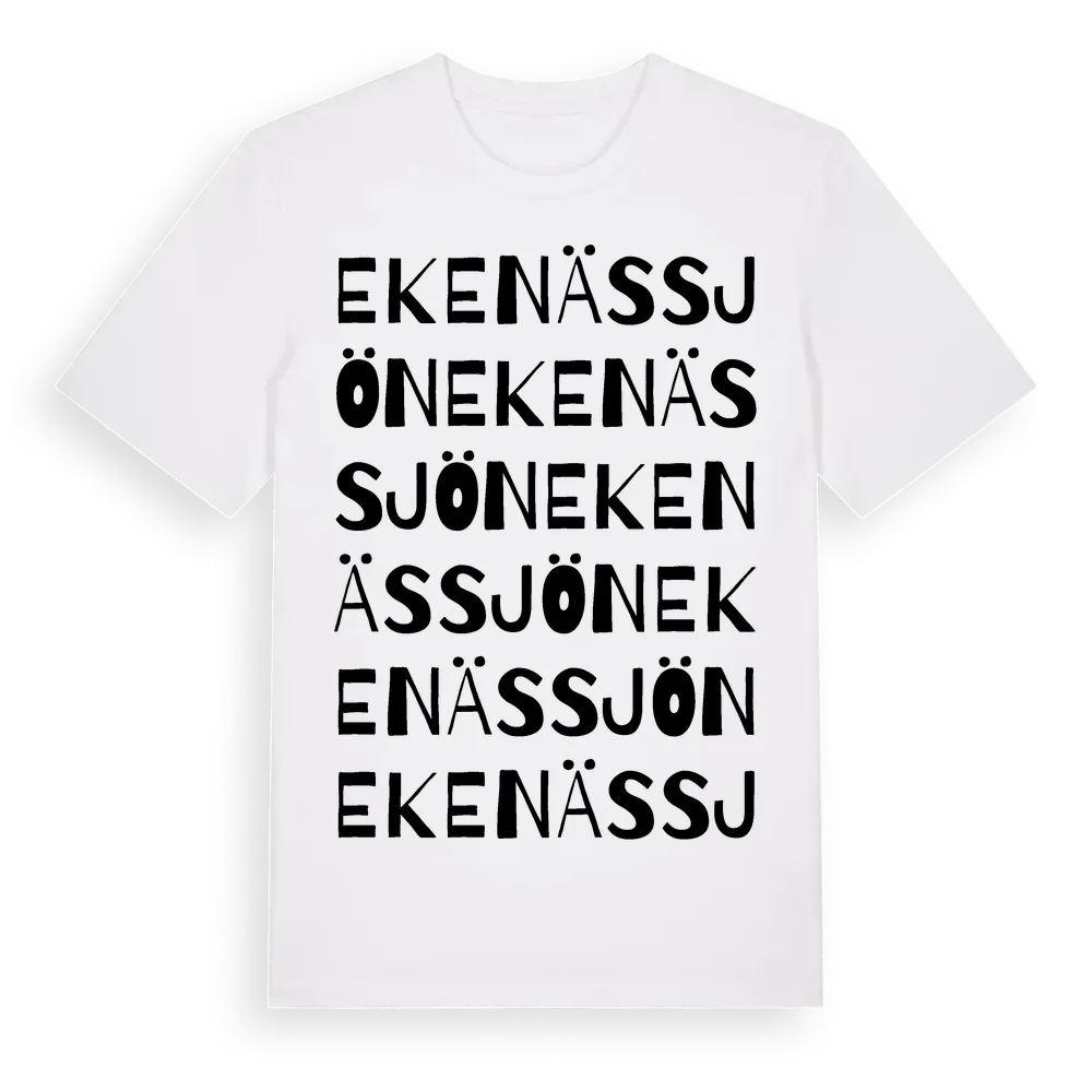 Ekenässjön ordlek t-shirt är inspirerad av byn Ekenässjön i Jönköpings län, Sverige. Tröjan är designad för dig som har en speciell koppling till platsen – oavsett om du bor här, har rötterna här eller bara älskar Ekenässjön.