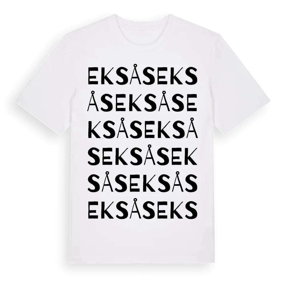 Eksås ordlek t-shirt är inspirerad av Eksås i Jönköpings län, Sverige. Tröjan är designad för dig som har en speciell koppling till platsen – oavsett om du bor här, har rötterna här eller bara älskar Eksås.