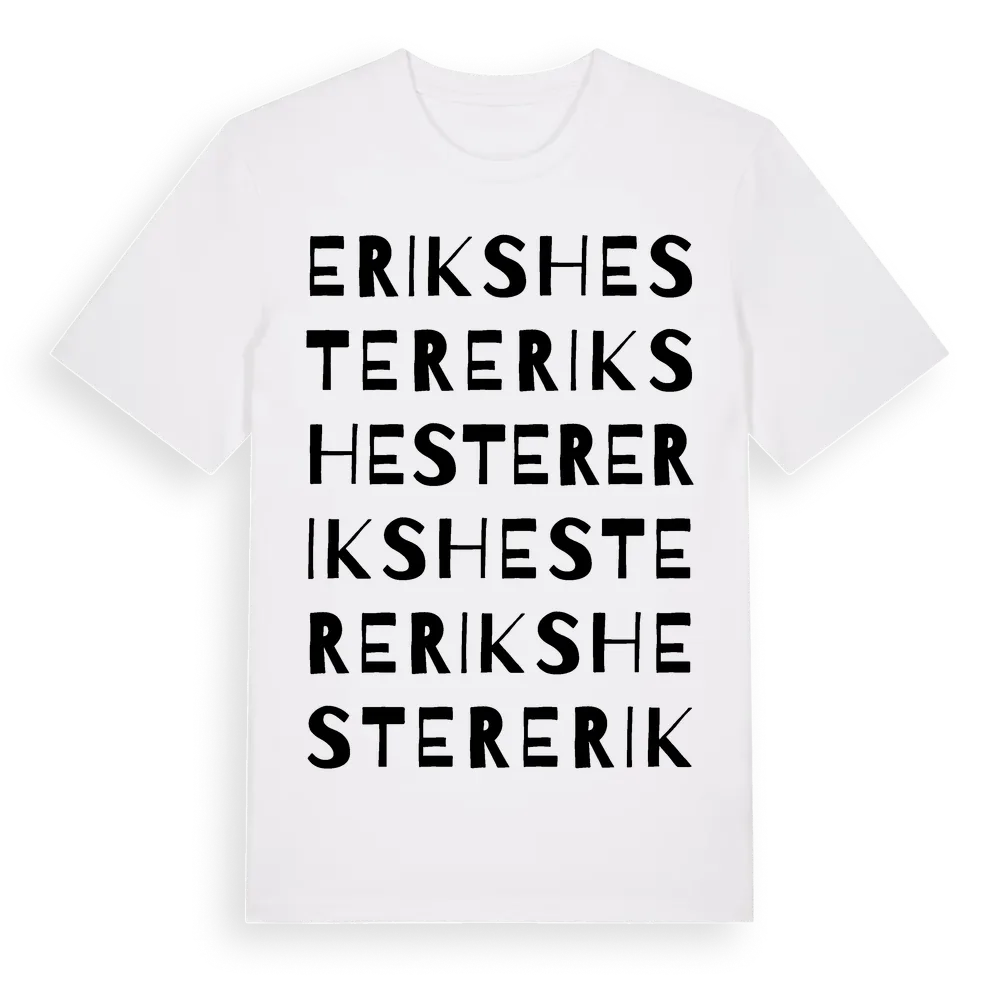 Erikshester ordlek t-shirt är inspirerad av byn Erikshester i Jönköpings län, Sverige. Tröjan är designad för dig som har en speciell koppling till platsen – oavsett om du bor här, har rötterna här eller bara älskar Erikshester.