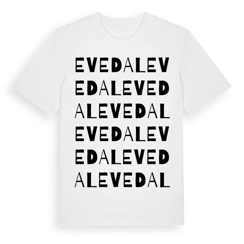 Evedal ordlek t-shirt är inspirerad av Evedal i Jönköpings län, Sverige. Tröjan är designad för dig som har en speciell koppling till platsen – oavsett om du bor här, har rötterna här eller bara älskar Evedal.