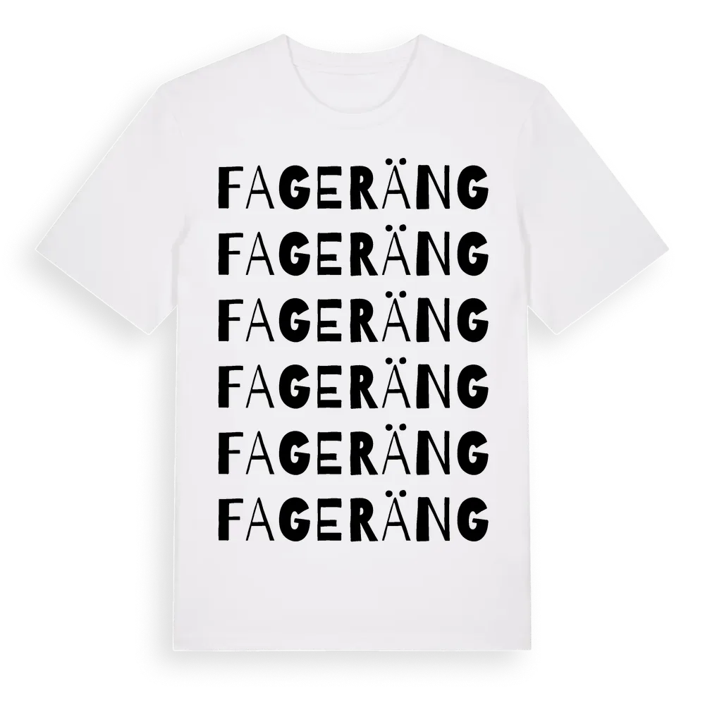 Fageräng ordlek t-shirt är inspirerad av Fageräng i Jönköpings län, Sverige. Tröjan är designad för dig som har en speciell koppling till platsen – oavsett om du bor här, har rötterna här eller bara älskar Fageräng.