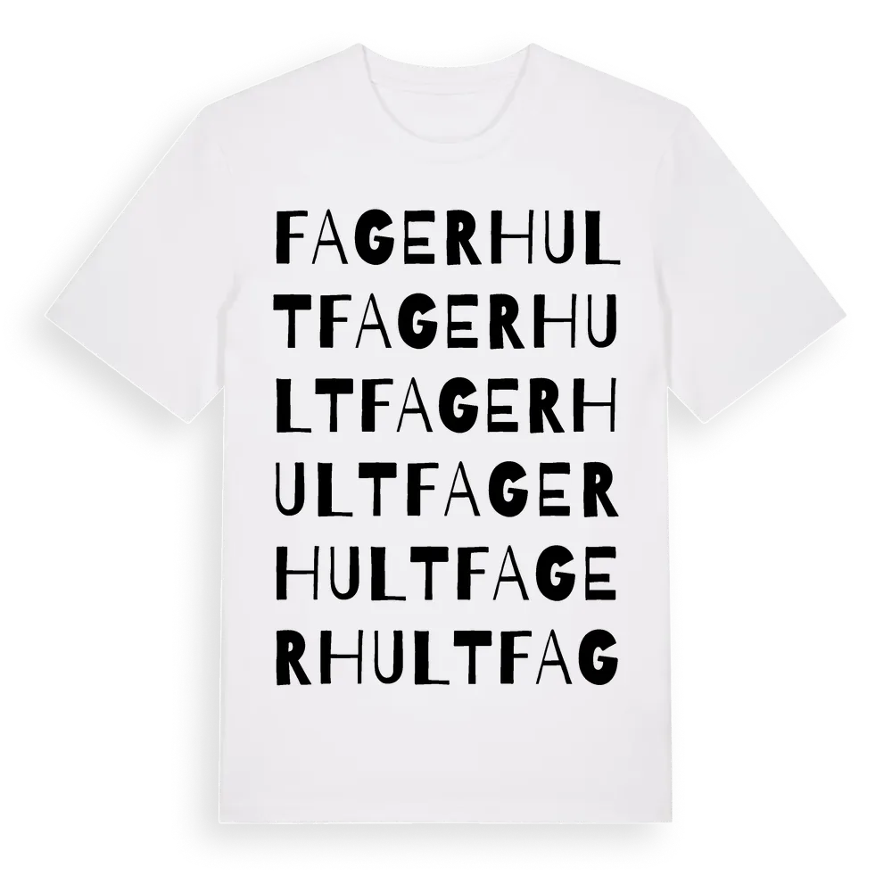 Fagerhult ordlek t-shirt är inspirerad av Fagerhult i Jönköpings län, Sverige. Tröjan är designad för dig som har en speciell koppling till platsen – oavsett om du bor här, har rötterna här eller bara älskar Fagerhult.