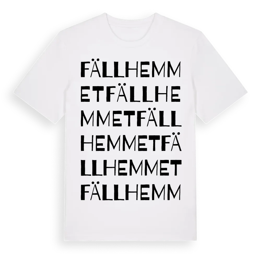 Fällhemmet ordlek t-shirt är inspirerad av byn Fällhemmet i Jönköpings län, Sverige. Tröjan är designad för dig som har en speciell koppling till platsen – oavsett om du bor här, har rötterna här eller bara älskar Fällhemmet.
