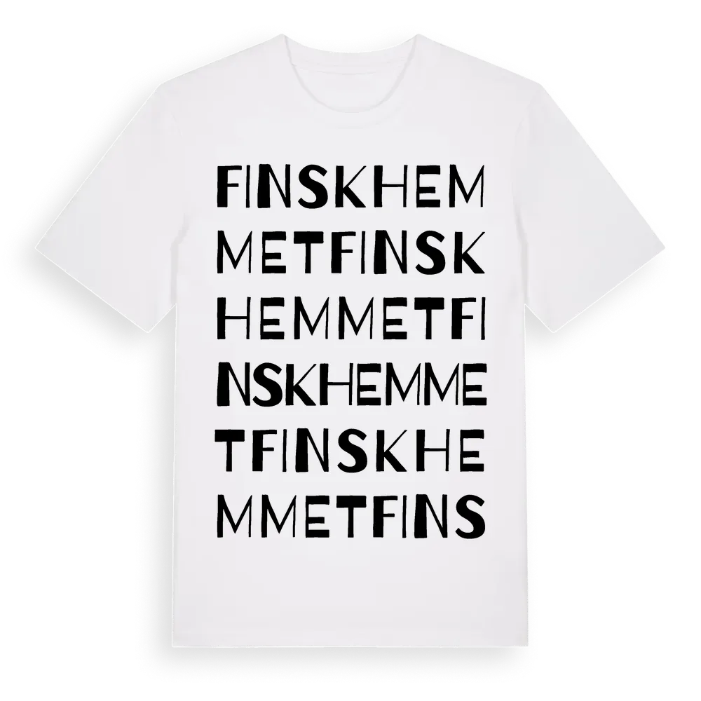 Finskhemmet ordlek t-shirt är inspirerad av Finskhemmet i Jönköpings län, Sverige. Tröjan är designad för dig som har en speciell koppling till platsen – oavsett om du bor här, har rötterna här eller bara älskar Finskhemmet.