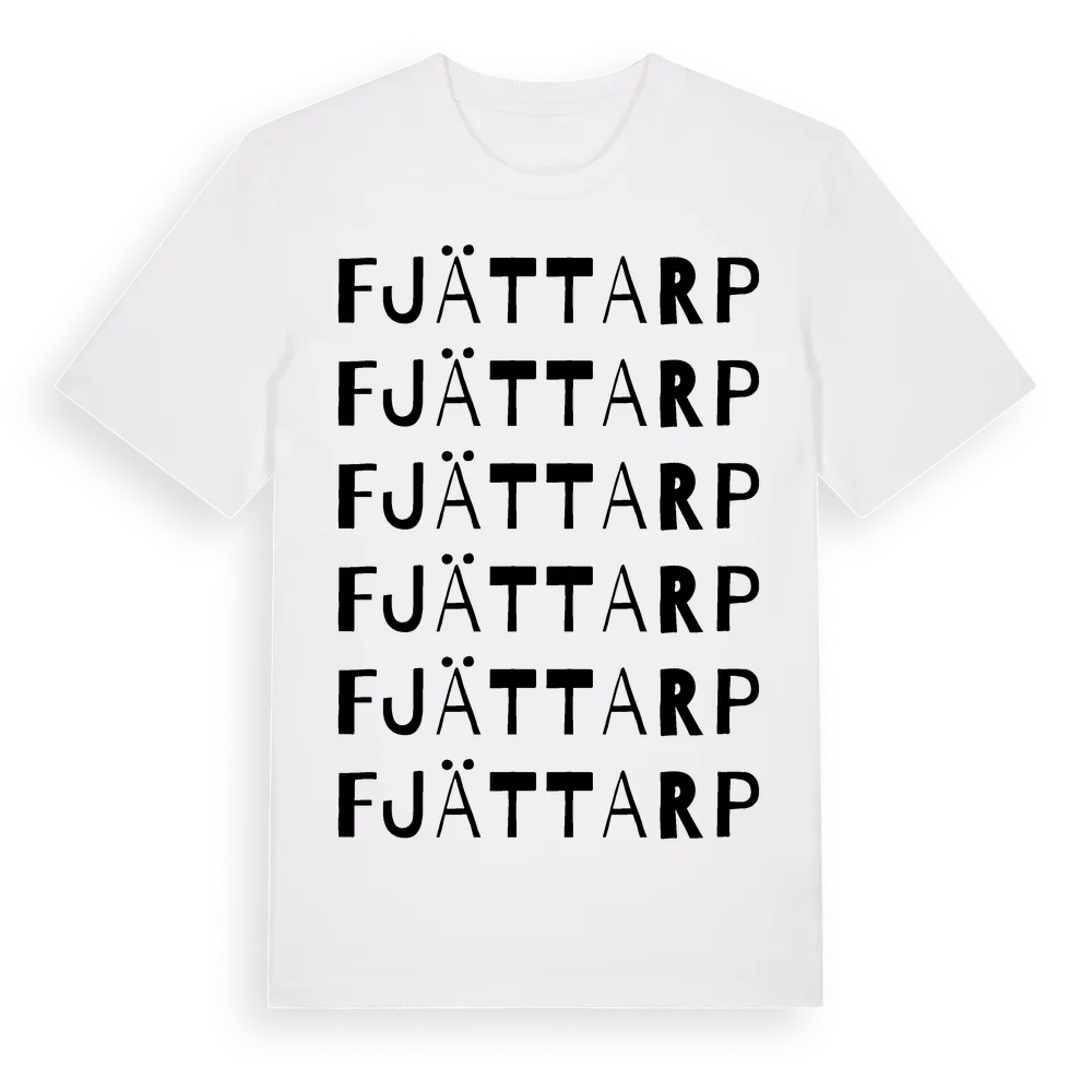 Fjättarp ordlek t-shirt är inspirerad av Fjättarp i Jönköpings län, Sverige. Tröjan är designad för dig som har en speciell koppling till platsen – oavsett om du bor här, har rötterna här eller bara älskar Fjättarp.