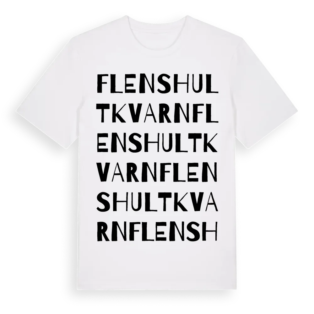 Flenshult Kvarn ordlek t-shirt är inspirerad av Flenshult Kvarn i Jönköpings län, Sverige. Tröjan är designad för dig som har en speciell koppling till platsen – oavsett om du bor här, har rötterna här eller bara älskar Flenshult Kvarn.