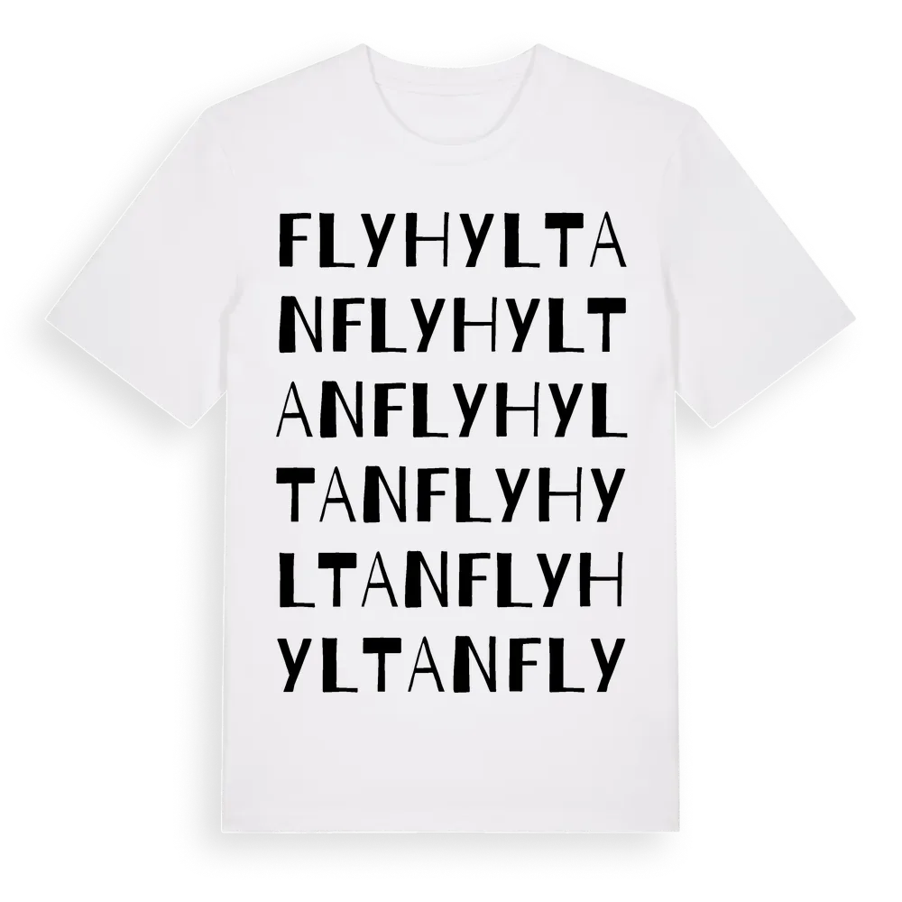 Flyhyltan ordlek t-shirt är inspirerad av Flyhyltan i Jönköpings län, Sverige. Tröjan är designad för dig som har en speciell koppling till platsen – oavsett om du bor här, har rötterna här eller bara älskar Flyhyltan.