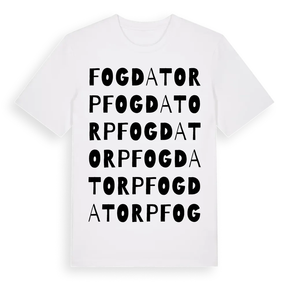 Fogdatorp ordlek t-shirt är inspirerad av Fogdatorp i Jönköpings län, Sverige. Tröjan är designad för dig som har en speciell koppling till platsen – oavsett om du bor här, har rötterna här eller bara älskar Fogdatorp.