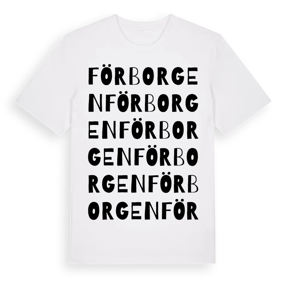 Förborgen ordlek t-shirt är inspirerad av Förborgen i Jönköpings län, Sverige. Tröjan är designad för dig som har en speciell koppling till platsen – oavsett om du bor här, har rötterna här eller bara älskar Förborgen.