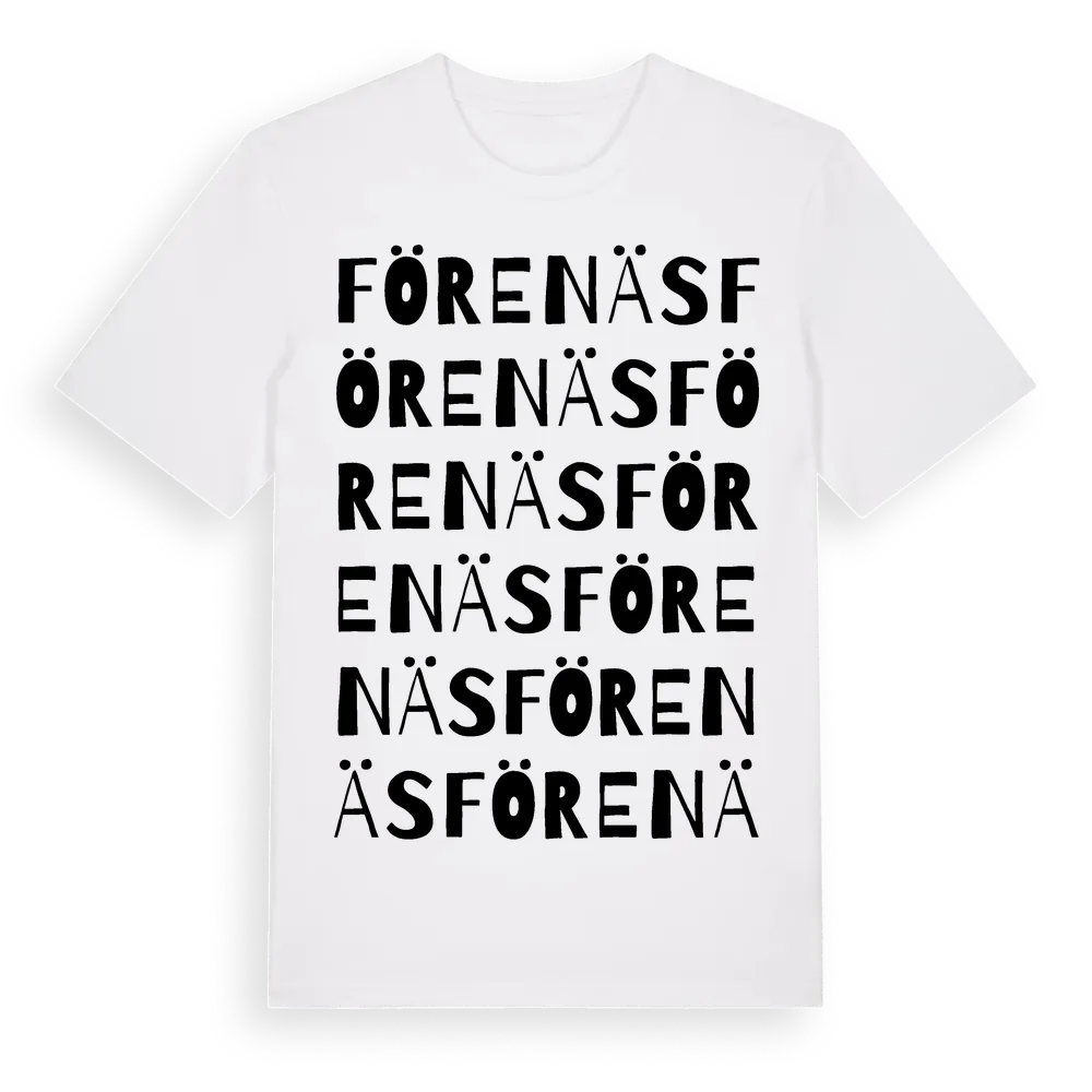 Förenäs ordlek t-shirt är inspirerad av Förenäs i Jönköpings län, Sverige. Tröjan är designad för dig som har en speciell koppling till platsen – oavsett om du bor här, har rötterna här eller bara älskar Förenäs.