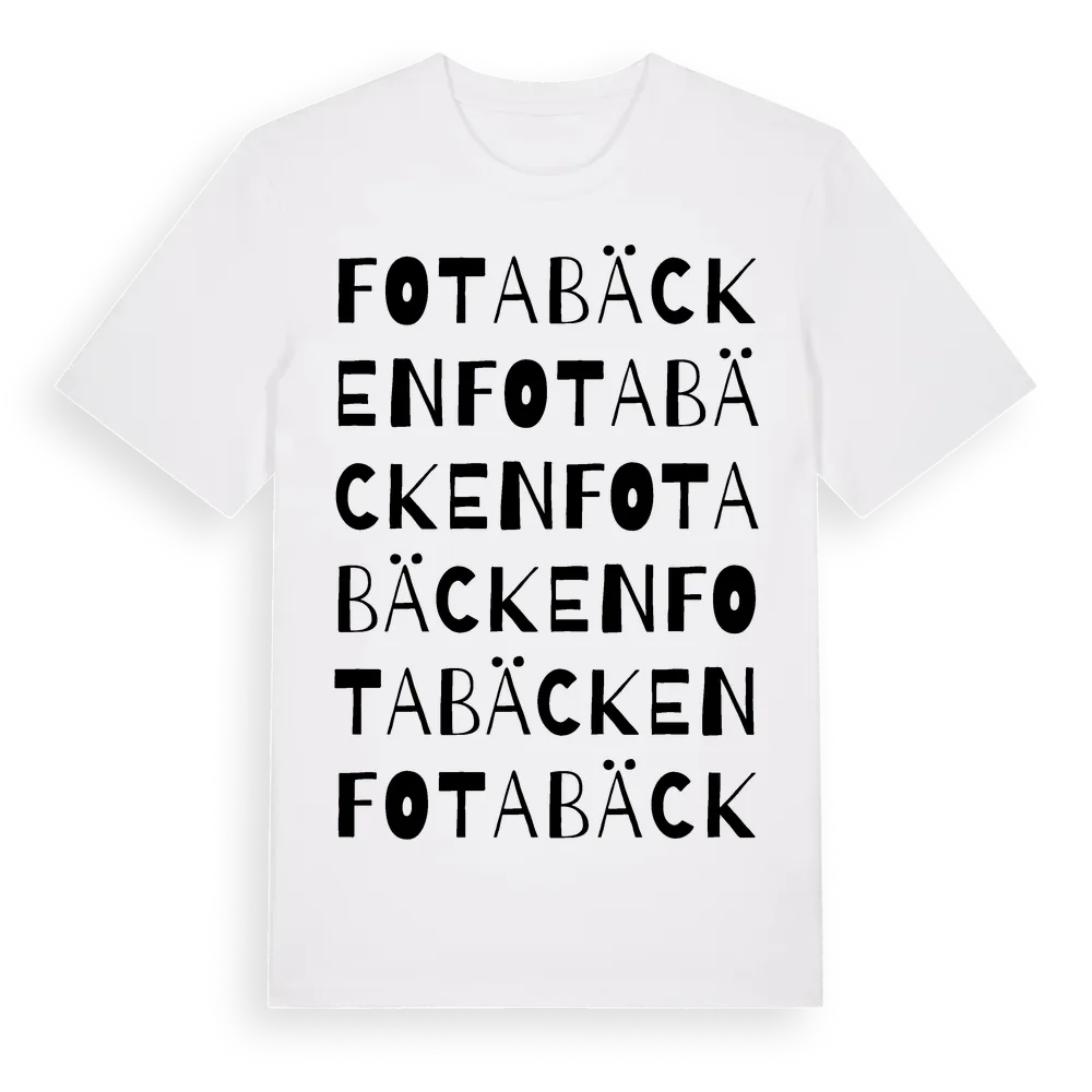 En ordlek byggd på Fotabäckens namn. Subtilt och klurig – ett motiv som bara de som verkligen känner platsen fullt ut förstår. Premium bomull, unisex – från Fotabäcken i Jönköpings län.