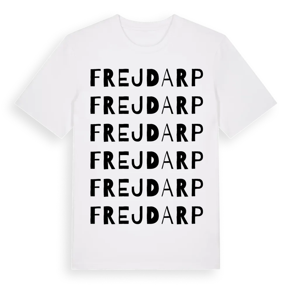 En ordlek byggd på Frejdarps namn. Subtilt och klurig – ett motiv som bara de som verkligen känner platsen fullt ut förstår. Premium bomull, unisex – från Frejdarp i Jönköpings län.