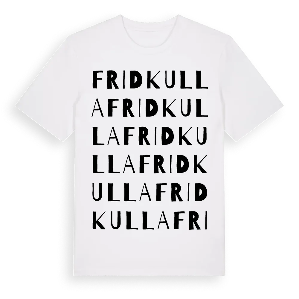 Fridkulla ordlek t-shirt är inspirerad av Fridkulla i Jönköpings län, Sverige. Tröjan är designad för dig som har en speciell koppling till platsen – oavsett om du bor här, har rötterna här eller bara älskar Fridkulla.