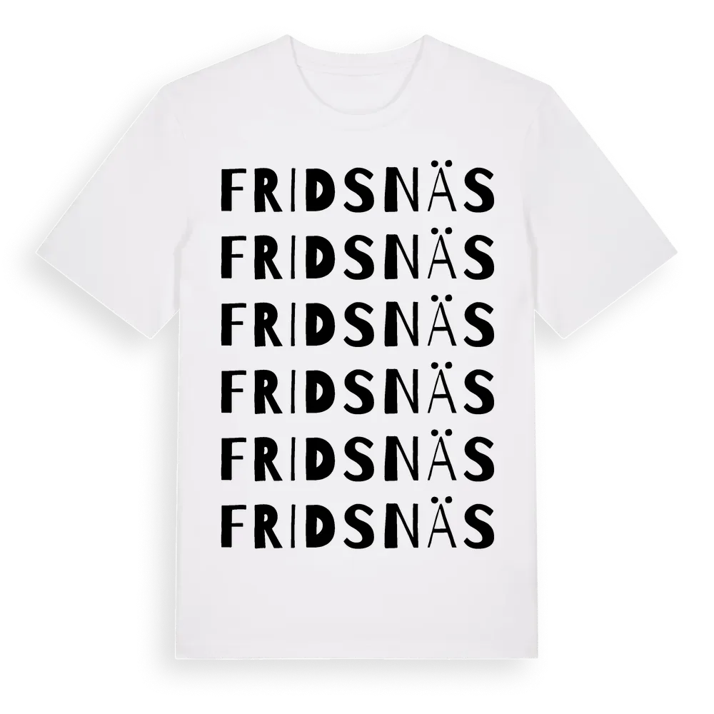 Fridsnäs ordlek t-shirt är inspirerad av Fridsnäs i Jönköpings län, Sverige. Tröjan är designad för dig som har en speciell koppling till platsen – oavsett om du bor här, har rötterna här eller bara älskar Fridsnäs.