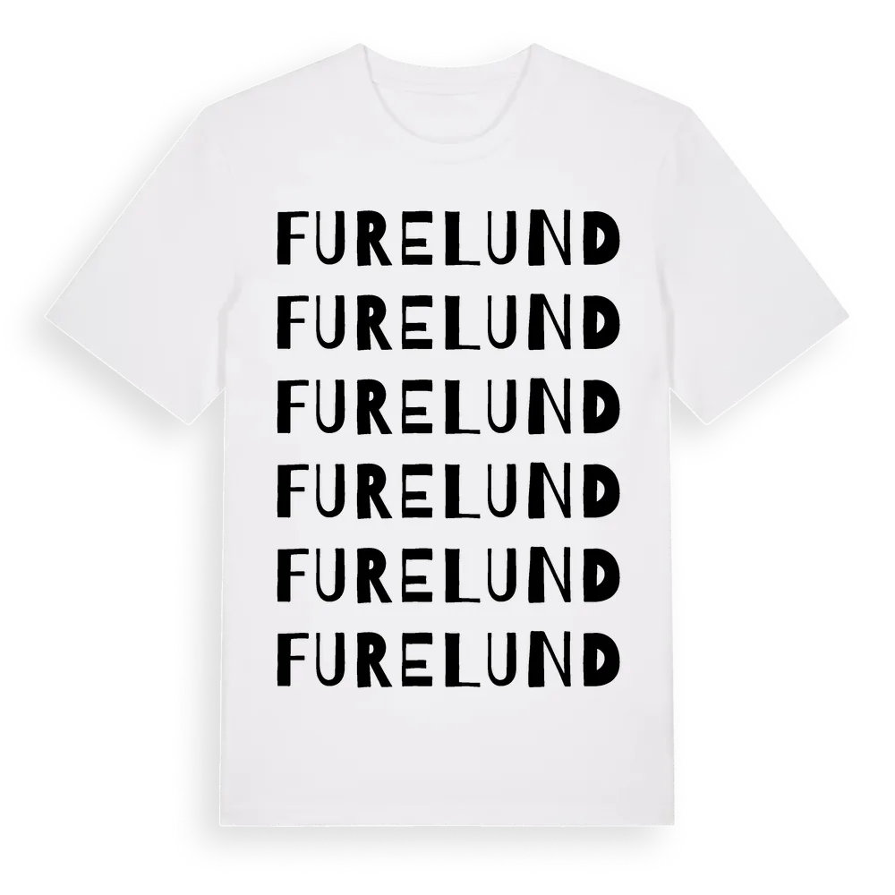 Furelund ordlek t-shirt är inspirerad av Furelund i Jönköpings län, Sverige. Tröjan är designad för dig som har en speciell koppling till platsen – oavsett om du bor här, har rötterna här eller bara älskar Furelund.