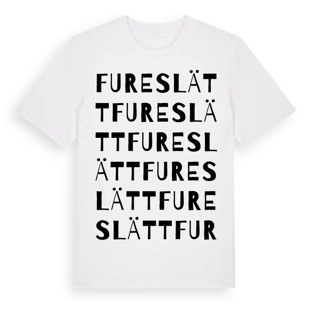 Fureslätt ordlek t-shirt är inspirerad av Fureslätt i Jönköpings län, Sverige. Tröjan är designad för dig som har en speciell koppling till platsen – oavsett om du bor här, har rötterna här eller bara älskar Fureslätt.