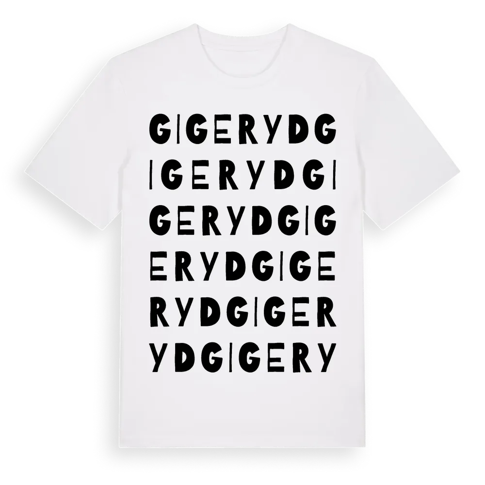Gigeryd ordlek t-shirt är inspirerad av byn Gigeryd i Jönköpings län, Sverige. Tröjan är designad för dig som har en speciell koppling till platsen – oavsett om du bor här, har rötterna här eller bara älskar Gigeryd.
