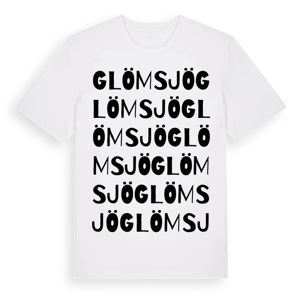 En ordlek byggd på Glömsjös namn. Subtilt och klurig – ett motiv som bara de som verkligen känner platsen fullt ut förstår. Premium bomull, unisex – från Glömsjö i Jönköpings län.