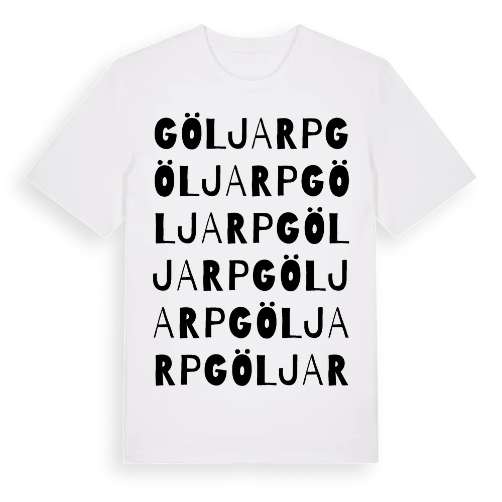 Göljarp ordlek t-shirt är inspirerad av Göljarp i Jönköpings län, Sverige. Tröjan är designad för dig som har en speciell koppling till platsen – oavsett om du bor här, har rötterna här eller bara älskar Göljarp.
