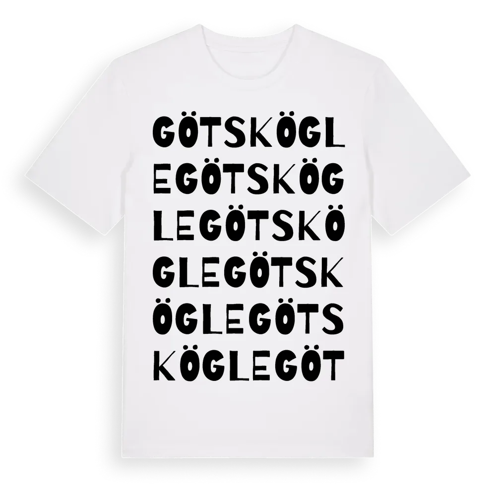 En ordlek byggd på Götskögles namn. Subtilt och klurig – ett motiv som bara de som verkligen känner platsen fullt ut förstår. Premium bomull, unisex – från Götskögle i Jönköpings län.