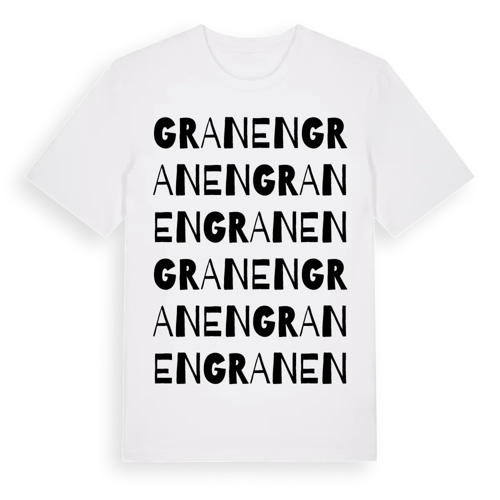 Granen ordlek t-shirt är inspirerad av byn Granen i Jönköpings län, Sverige. Tröjan är designad för dig som har en speciell koppling till platsen – oavsett om du bor här, har rötterna här eller bara älskar Granen.