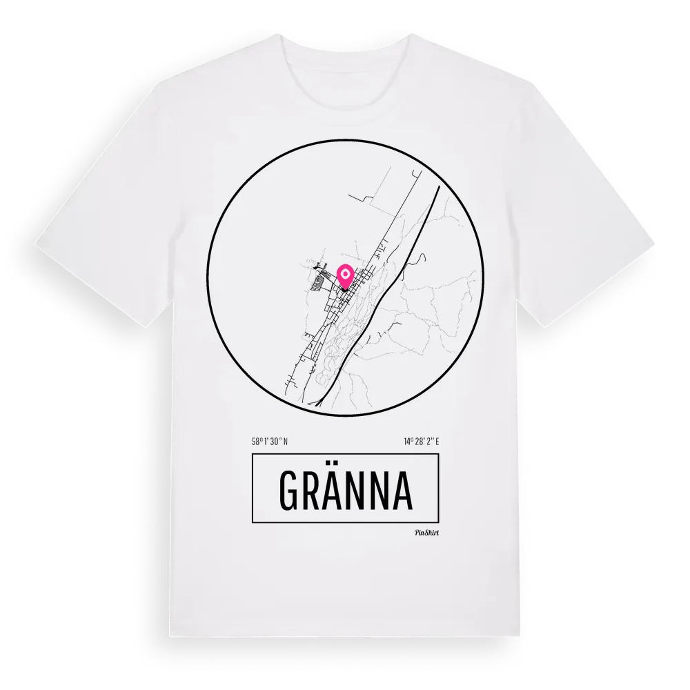 Ett rent, runt tryck med Grännas namn. Minimalistiskt och stilrent – perfekt för den som känner platsen utan att skrika det. Premium bomull, unisex – från staden Gränna i Jönköpings län.
