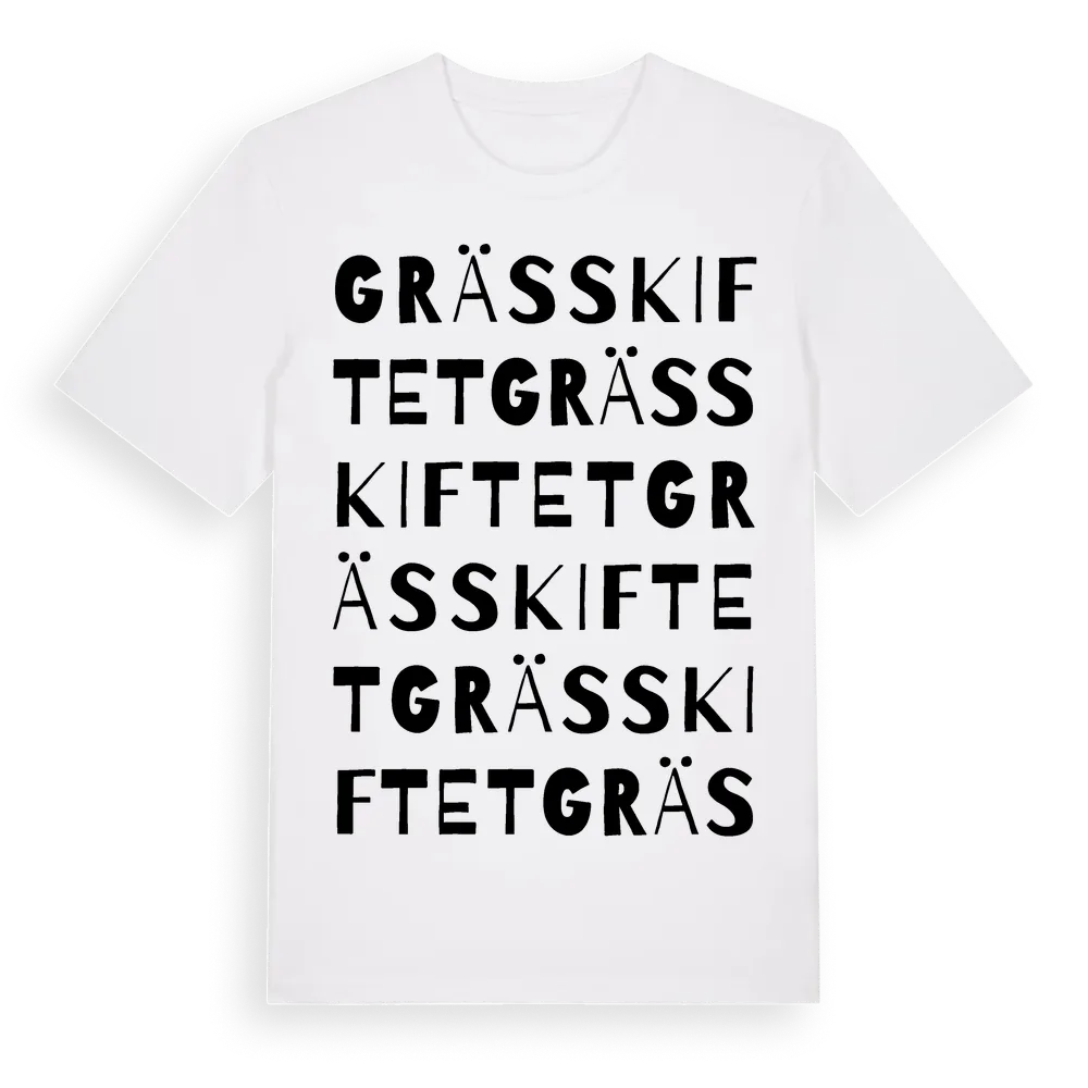 Grässkiftet ordlek t-shirt är inspirerad av Grässkiftet i Jönköpings län, Sverige. Tröjan är designad för dig som har en speciell koppling till platsen – oavsett om du bor här, har rötterna här eller bara älskar Grässkiftet.