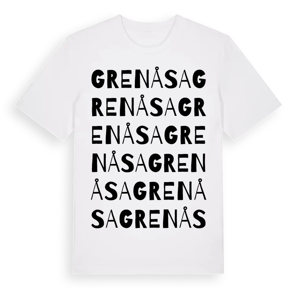 Grenåsa ordlek t-shirt är inspirerad av byn Grenåsa i Jönköpings län, Sverige. Tröjan är designad för dig som har en speciell koppling till platsen – oavsett om du bor här, har rötterna här eller bara älskar Grenåsa.