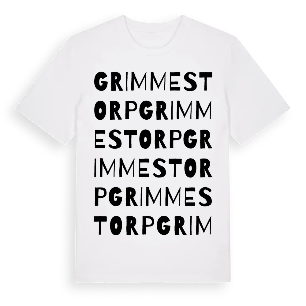 Grimmestorp ordlek t-shirt är inspirerad av byn Grimmestorp i Jönköpings län, Sverige. Tröjan är designad för dig som har en speciell koppling till platsen – oavsett om du bor här, har rötterna här eller bara älskar Grimmestorp.
