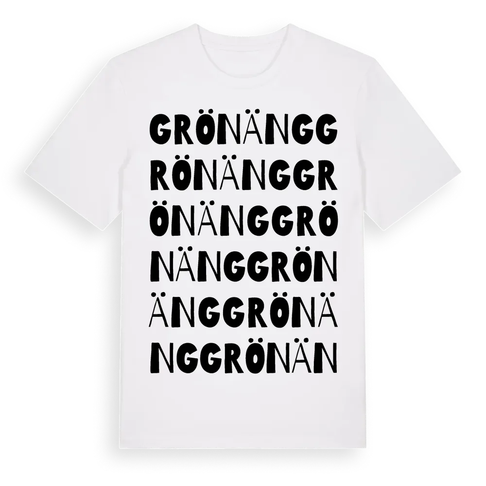 Grönäng ordlek t-shirt är inspirerad av Grönäng i Jönköpings län, Sverige. Tröjan är designad för dig som har en speciell koppling till platsen – oavsett om du bor här, har rötterna här eller bara älskar Grönäng.