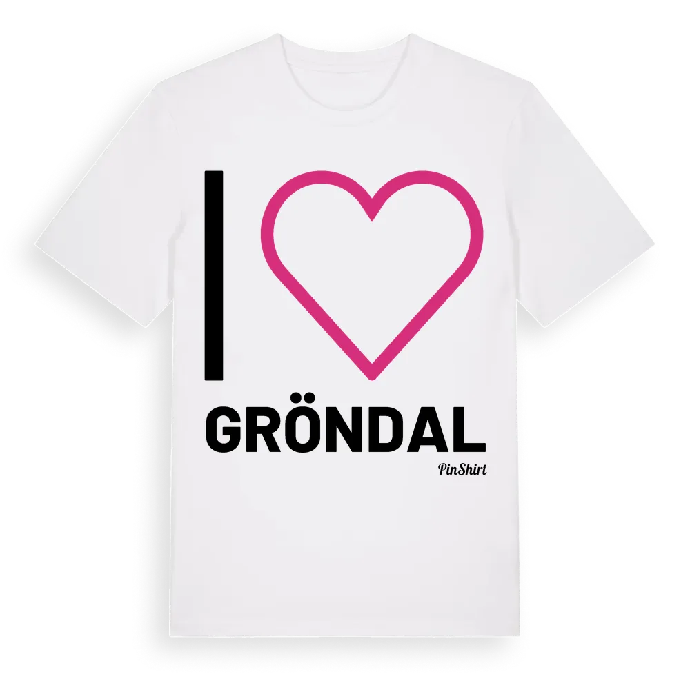 Det klassiska "I ❤ Gröndal"-motivet i stort format som täcker hela bröstet. För dig som vill visa kärleken till Gröndal på riktigt. Premium bomull, unisex – från Gröndal i Jönköpings län.