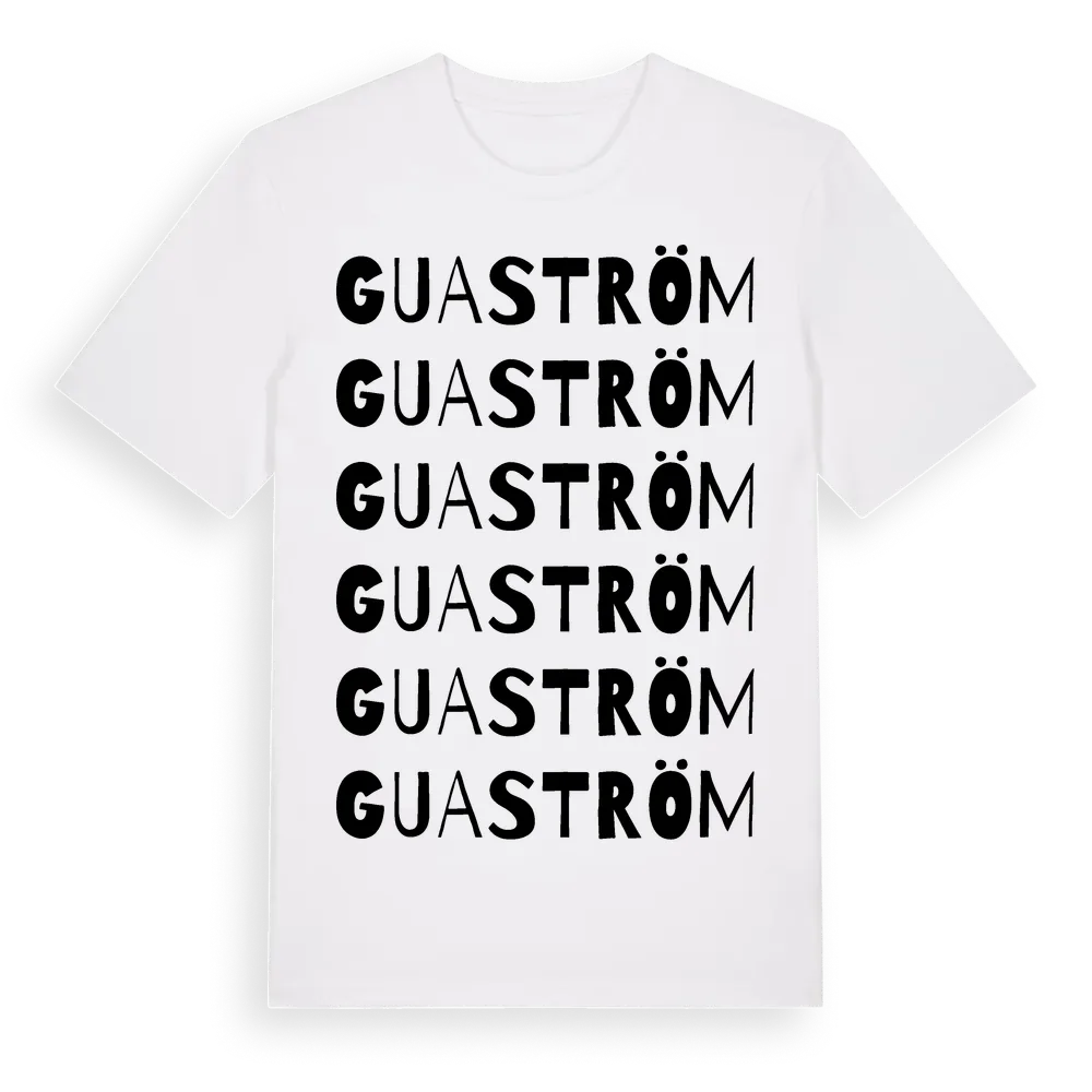 Guaström ordlek t-shirt är inspirerad av byn Guaström i Jönköpings län, Sverige. Tröjan är designad för dig som har en speciell koppling till platsen – oavsett om du bor här, har rötterna här eller bara älskar Guaström.