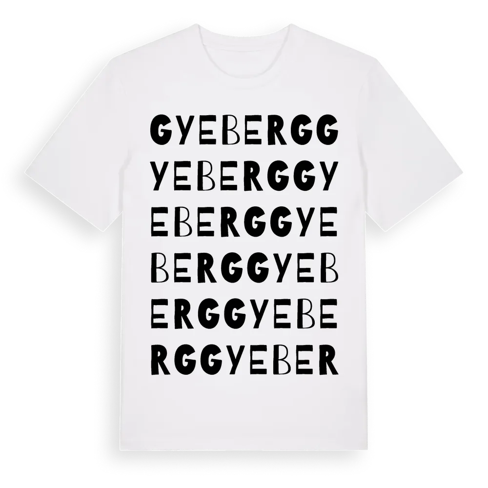 Gyeberg ordlek t-shirt är inspirerad av byn Gyeberg i Jönköpings län, Sverige. Tröjan är designad för dig som har en speciell koppling till platsen – oavsett om du bor här, har rötterna här eller bara älskar Gyeberg.