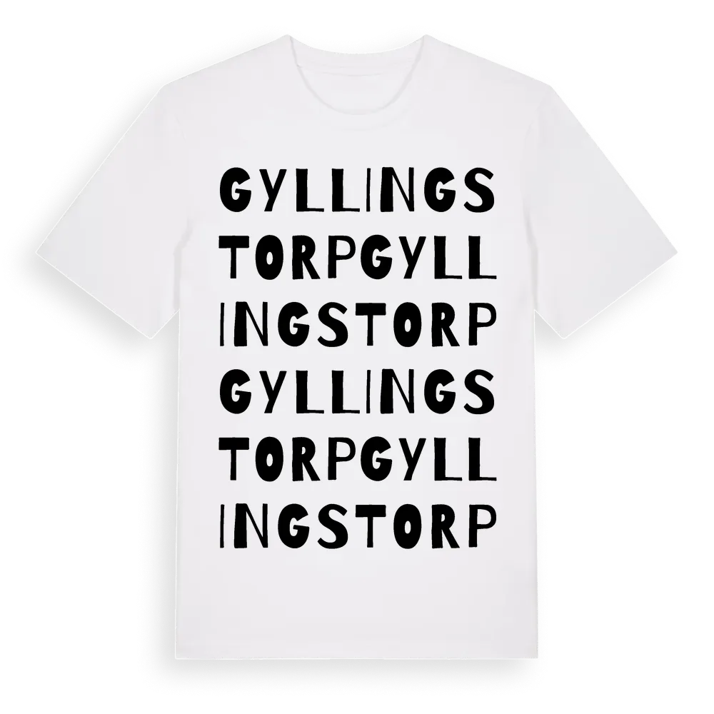 Gyllingstorp ordlek t-shirt är inspirerad av Gyllingstorp i Jönköpings län, Sverige. Tröjan är designad för dig som har en speciell koppling till platsen – oavsett om du bor här, har rötterna här eller bara älskar Gyllingstorp.