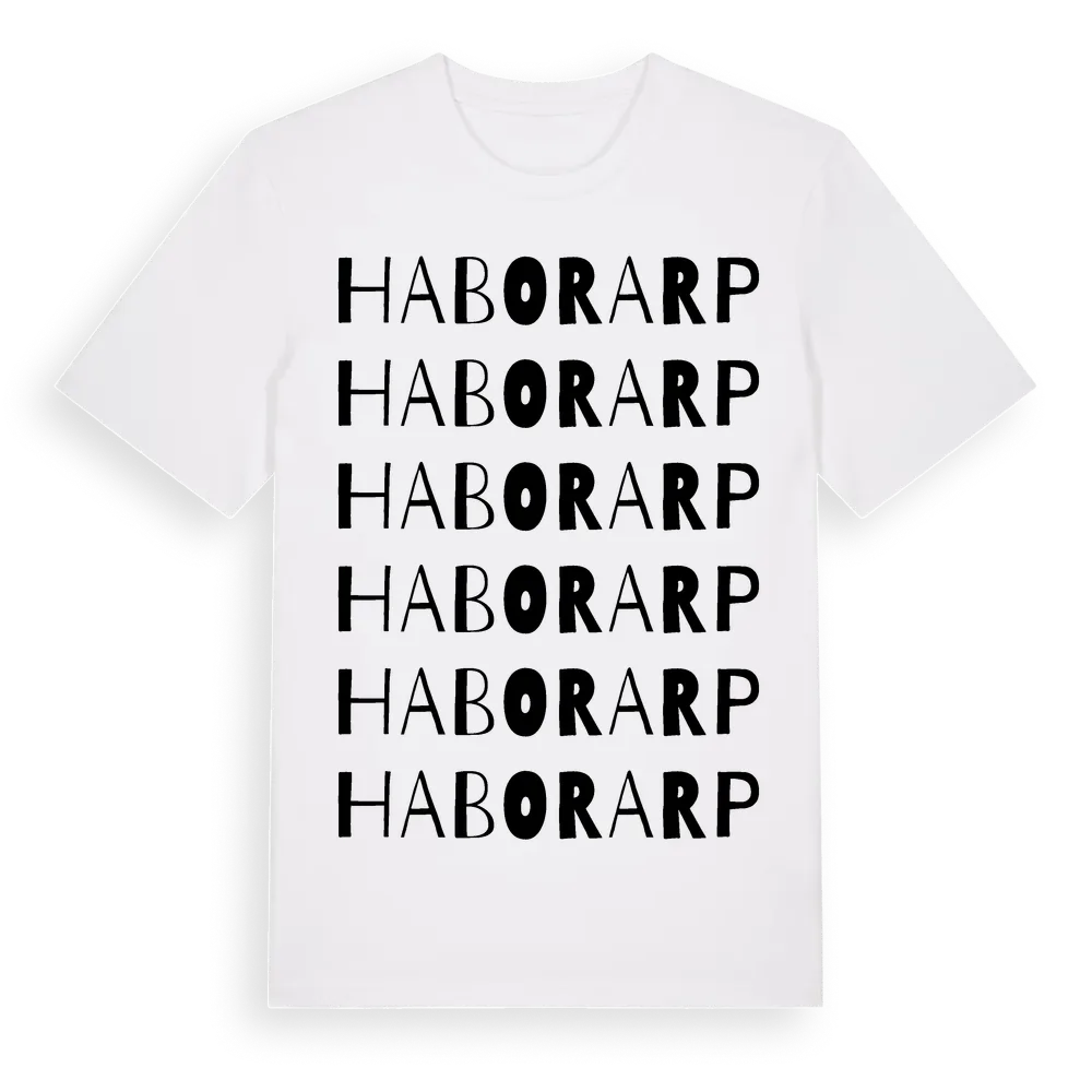 Haborarp ordlek t-shirt är inspirerad av Haborarp i Jönköpings län, Sverige. Tröjan är designad för dig som har en speciell koppling till platsen – oavsett om du bor här, har rötterna här eller bara älskar Haborarp.
