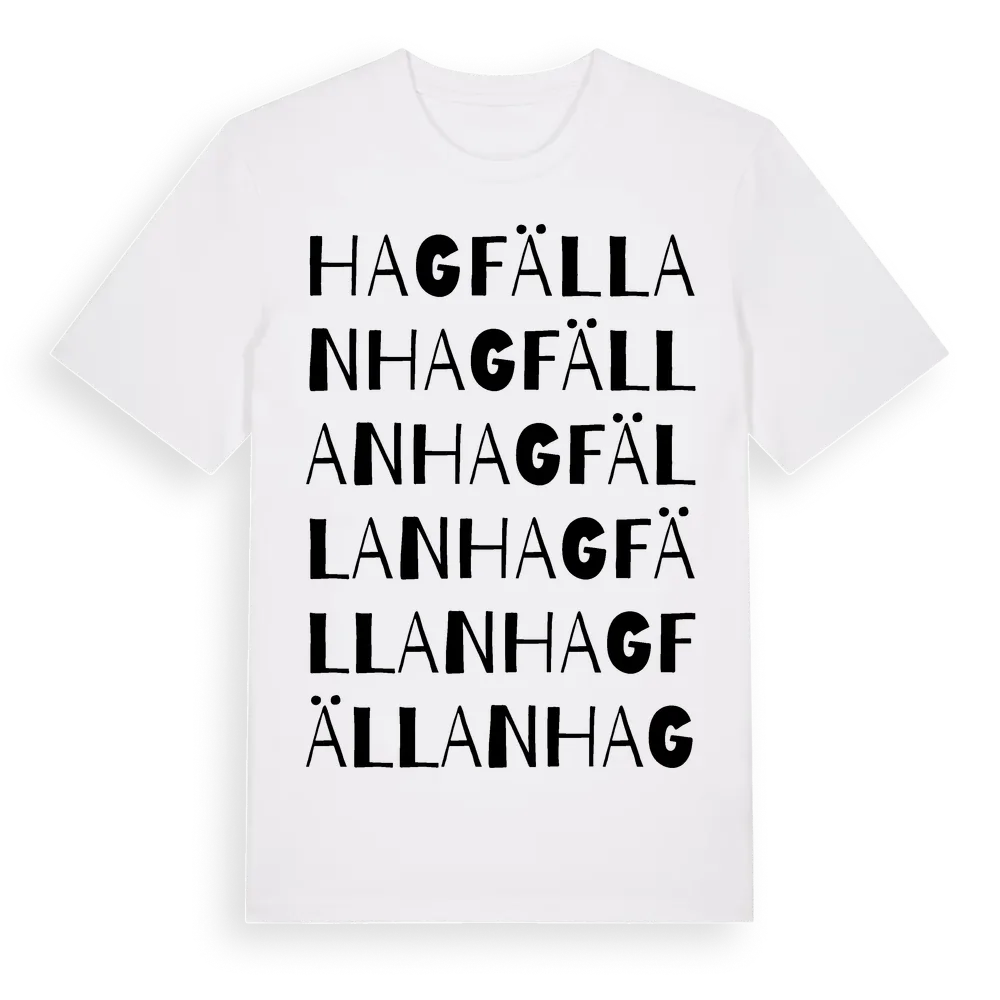 Hagfällan ordlek t-shirt är inspirerad av Hagfällan i Jönköpings län, Sverige. Tröjan är designad för dig som har en speciell koppling till platsen – oavsett om du bor här, har rötterna här eller bara älskar Hagfällan.