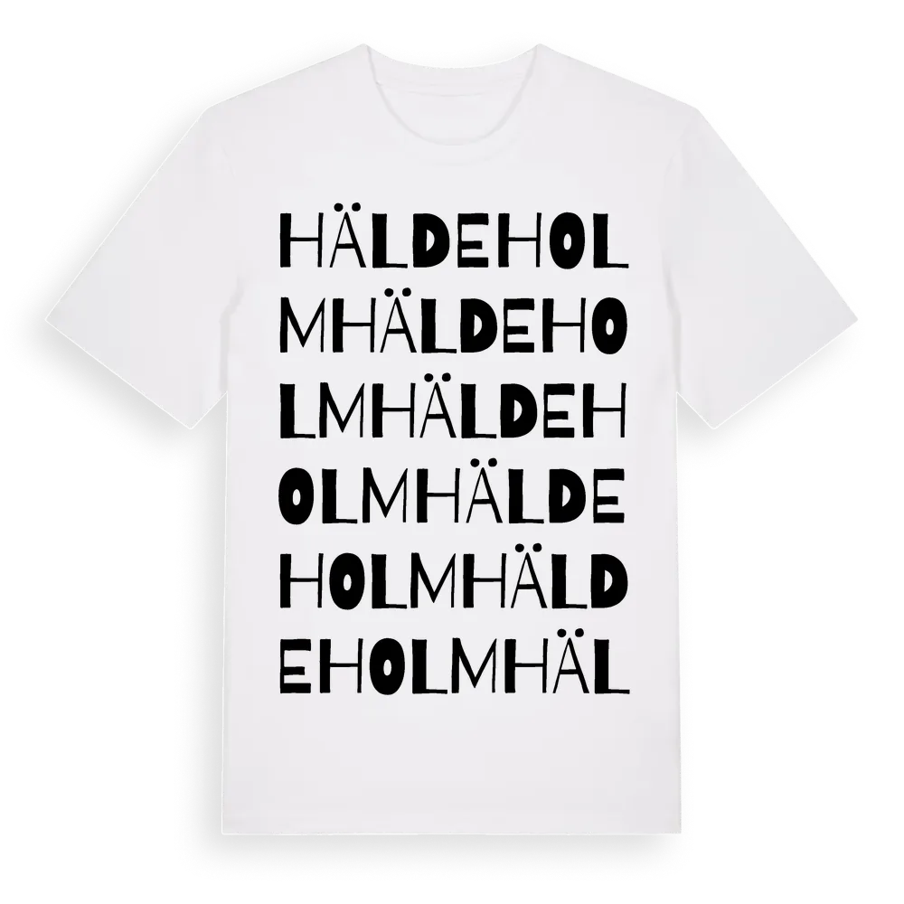 Häldeholm ordlek t-shirt är inspirerad av Häldeholm i Jönköpings län, Sverige. Tröjan är designad för dig som har en speciell koppling till platsen – oavsett om du bor här, har rötterna här eller bara älskar Häldeholm.