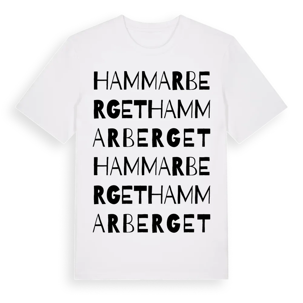 En ordlek byggd på Hammarbergets namn. Subtilt och klurig – ett motiv som bara de som verkligen känner platsen fullt ut förstår. Premium bomull, unisex – från Hammarberget i Jönköpings län.