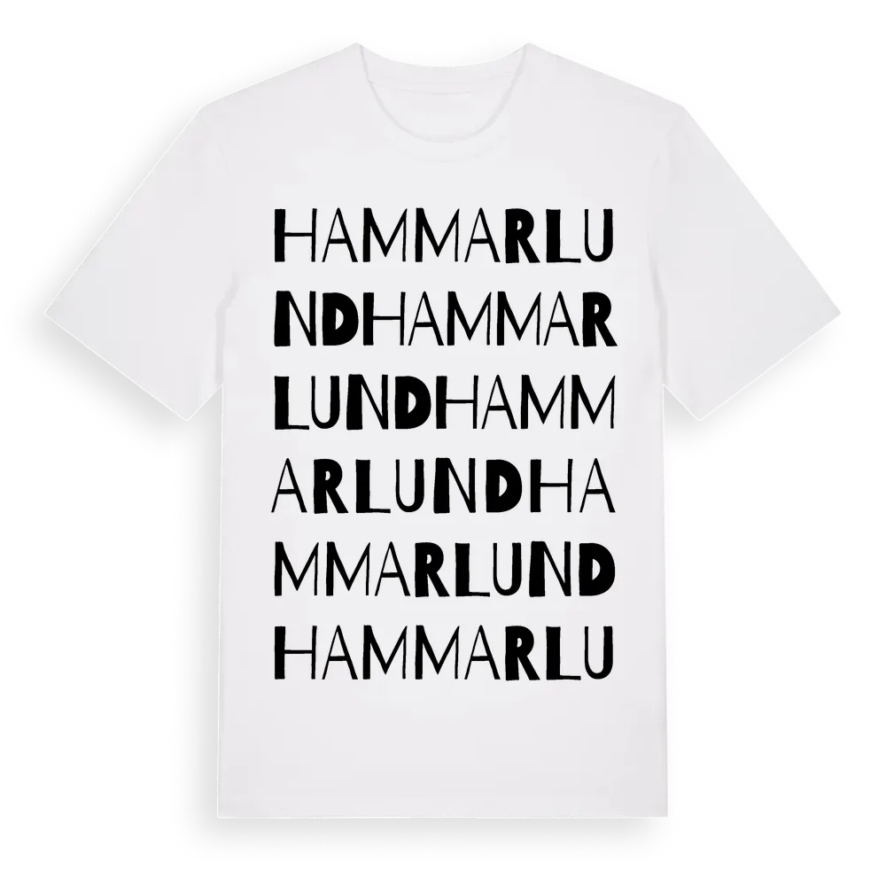 Hammarlund ordlek t-shirt är inspirerad av Hammarlund i Jönköpings län, Sverige. Tröjan är designad för dig som har en speciell koppling till platsen – oavsett om du bor här, har rötterna här eller bara älskar Hammarlund.