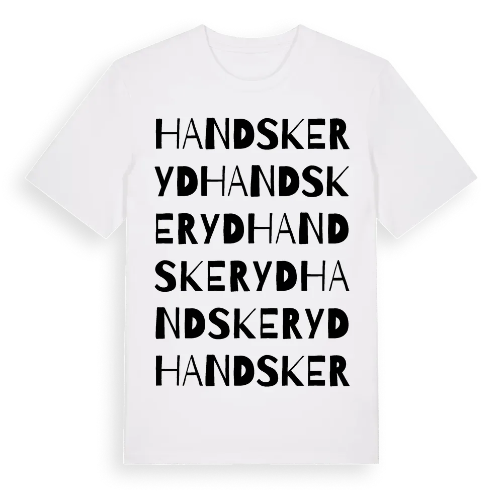 Handskeryd ordlek t-shirt är inspirerad av stadsdelen Handskeryd i Jönköpings län, Sverige. Tröjan är designad för dig som har en speciell koppling till platsen – oavsett om du bor här, har rötterna här eller bara älskar Handskeryd.