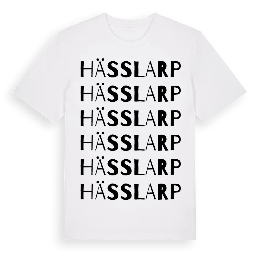 En ordlek byggd på Hässlarps namn. Subtilt och klurig – ett motiv som bara de som verkligen känner platsen fullt ut förstår. Premium bomull, unisex – från byn Hässlarp i Jönköpings län.