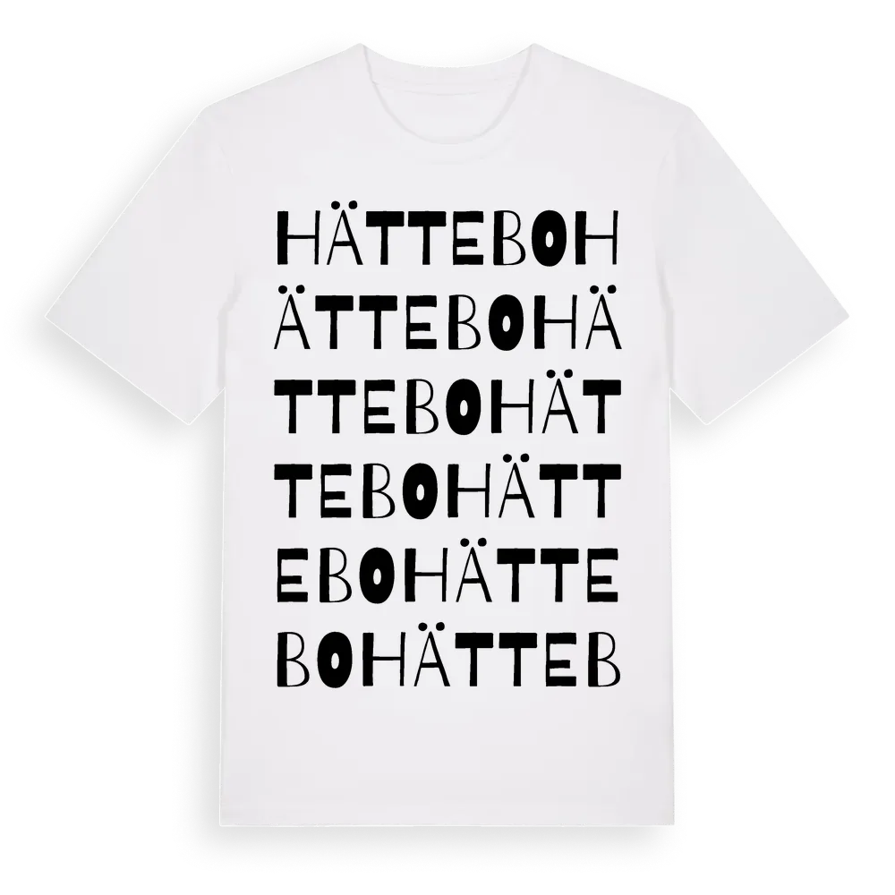Hättebo ordlek t-shirt är inspirerad av byn Hättebo i Jönköpings län, Sverige. Tröjan är designad för dig som har en speciell koppling till platsen – oavsett om du bor här, har rötterna här eller bara älskar Hättebo.
