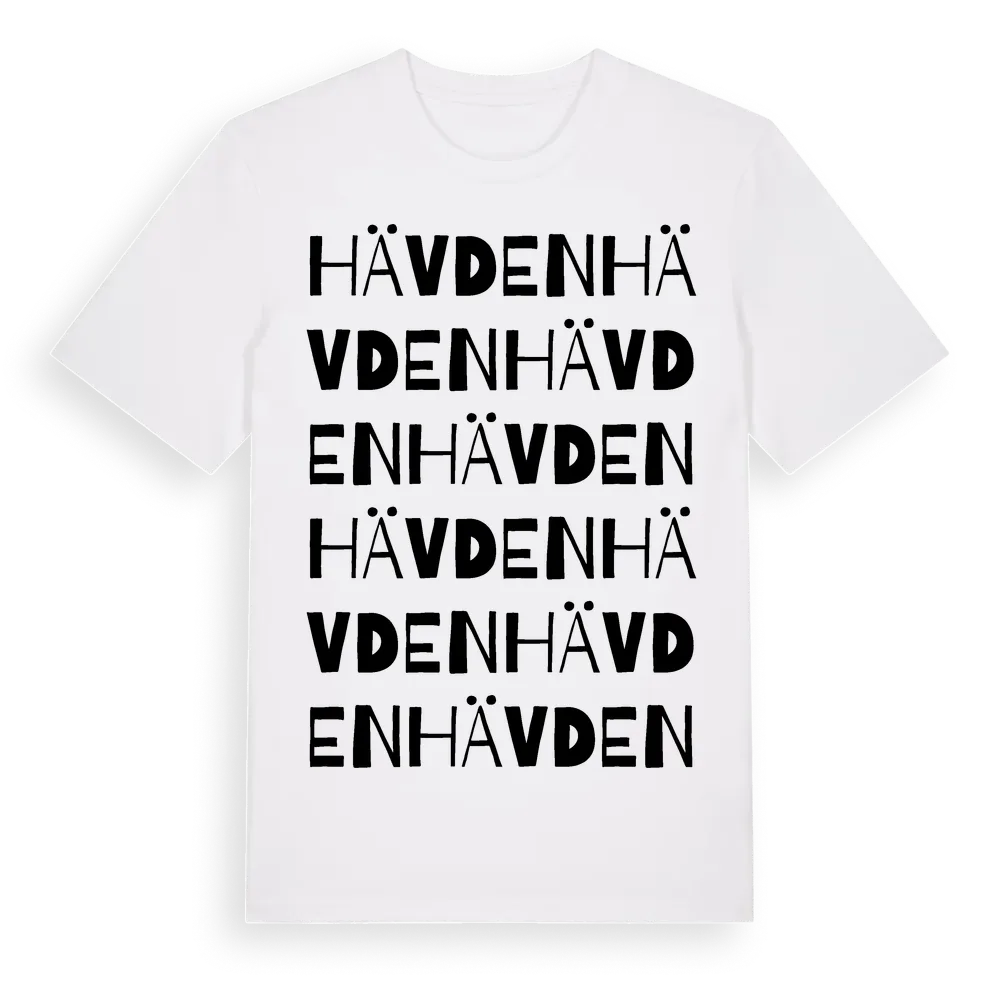 Hävden ordlek t-shirt är inspirerad av Hävden i Jönköpings län, Sverige. Tröjan är designad för dig som har en speciell koppling till platsen – oavsett om du bor här, har rötterna här eller bara älskar Hävden.