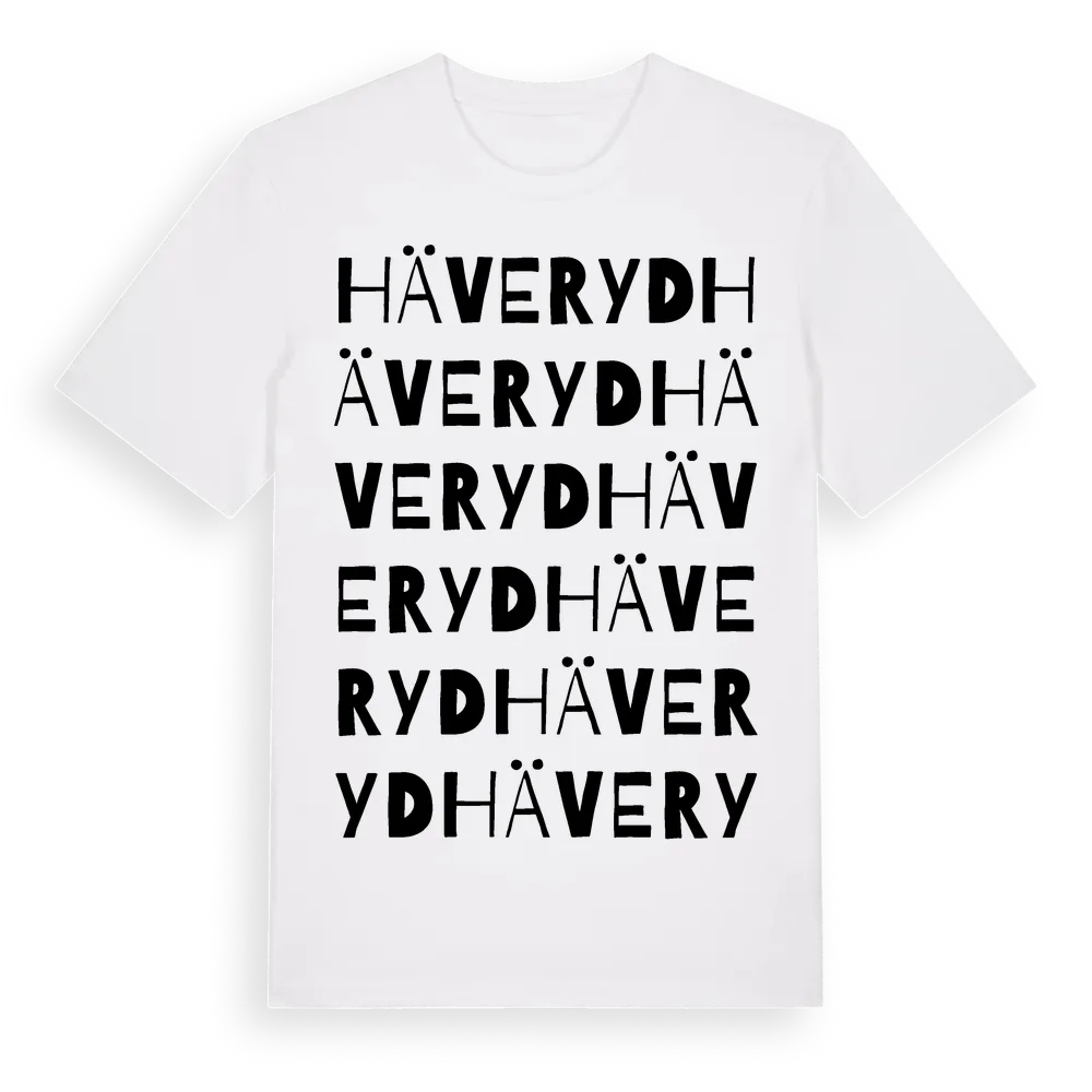 Häveryd ordlek t-shirt är inspirerad av Häveryd i Jönköpings län, Sverige. Tröjan är designad för dig som har en speciell koppling till platsen – oavsett om du bor här, har rötterna här eller bara älskar Häveryd.