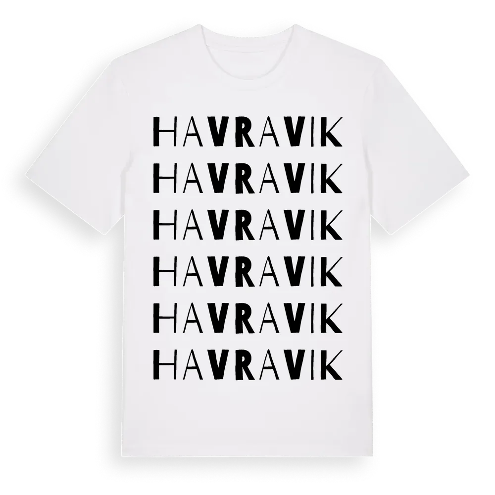 Havravik ordlek t-shirt är inspirerad av Havravik i Jönköpings län, Sverige. Tröjan är designad för dig som har en speciell koppling till platsen – oavsett om du bor här, har rötterna här eller bara älskar Havravik.