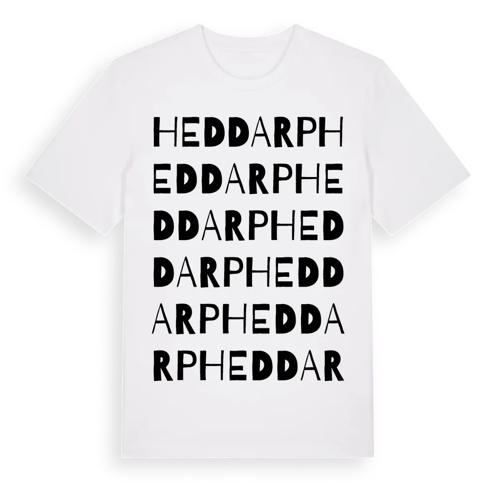 Heddarp ordlek t-shirt är inspirerad av Heddarp i Jönköpings län, Sverige. Tröjan är designad för dig som har en speciell koppling till platsen – oavsett om du bor här, har rötterna här eller bara älskar Heddarp.